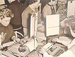 Ab 1947 können sie auch beruflich orientierte Kurse belegen – wie etwa kaufmännisches Rechnen, technisches Zeichnen, Buchführung, Stenografie oder den Umgang mit der Schreibmaschine.