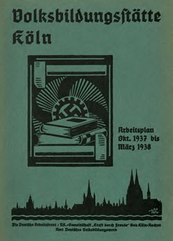 In die Lücke, welche die städtische Volkshochschule hinterlässt, tritt im Februar 1935 die sogenannte „Volksbildungsstätte“ der NS-Gemeinschaft „Kraft durch Freude“. Sie ist unmittelbar der NSDAP zugeordnet, aber auch eng mit der Kölner Stadtverwaltung verbunden: Zum einen stellt die Stadt Räumlichkeiten für die Kurse zur Verfügung. Zum anderen untersteht die Volksbildungsstätte einem „Protektorat“ (einer Art Vorstand), dem auch der Kölner Oberbürgermeister Günter Riesen angehört.
